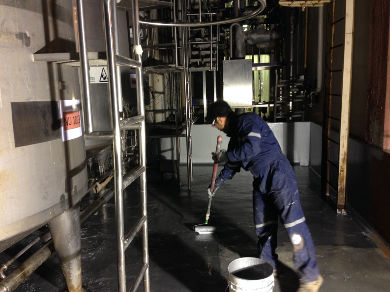 Reparación del pretil de los estanques de Soda Cáustica y Ácido Nítrico. Uso de Lining Kote® para proteger al hormigón de los constantes derrames.