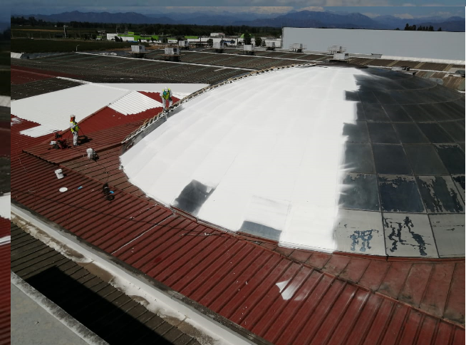 Aislación térmica sobre las cubiertas ubicadas en Lo Boza. Aplicación de Super Therm® evitó el uso de equipos de clima.